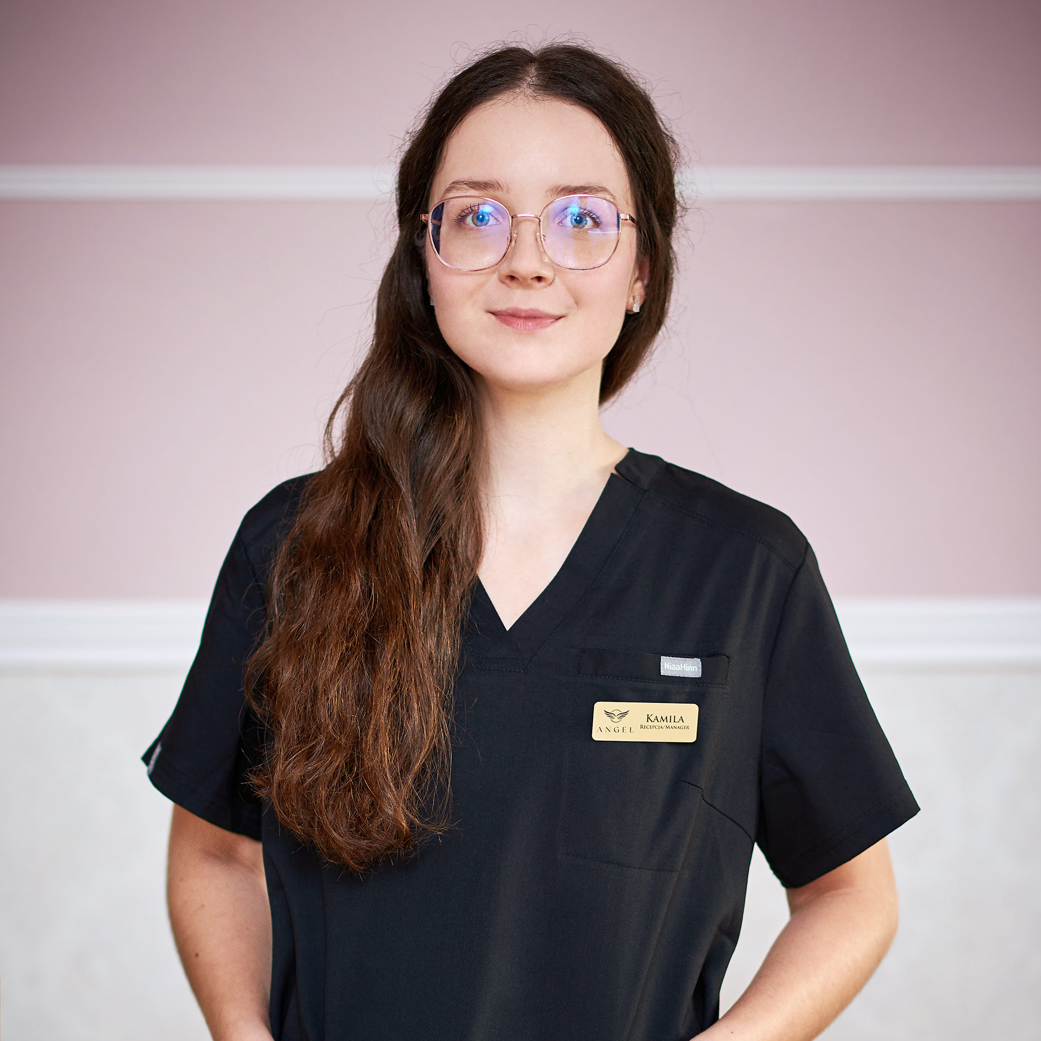 Mam na imię Kamila i od 3 lat jestem częścią tego miejsca, pełniąc rolę managera salonu. Wkładam całe serce w codzienne funkcjonowanie naszego zespołu. Studiuję zarządzanie na poziomie magisterskim, co pozwala mi rozwijać się i skuteczniej wspierać naszą ekipę. Moją pasją jest psychologia, co pomaga mi lepiej rozumieć potrzeby klientek i tworzyć atmosferę, do której chce się wracać. Prowadzę recepcję, koordynuję działania salonu oraz zarządzam naszymi mediami społecznościowymi, z miłością do estetyki i dbałością o każdy detal. Chętnie Z Tobą porozmawiam i doradzę w nurtujących Cię pytaniach! Do usłyszenia!